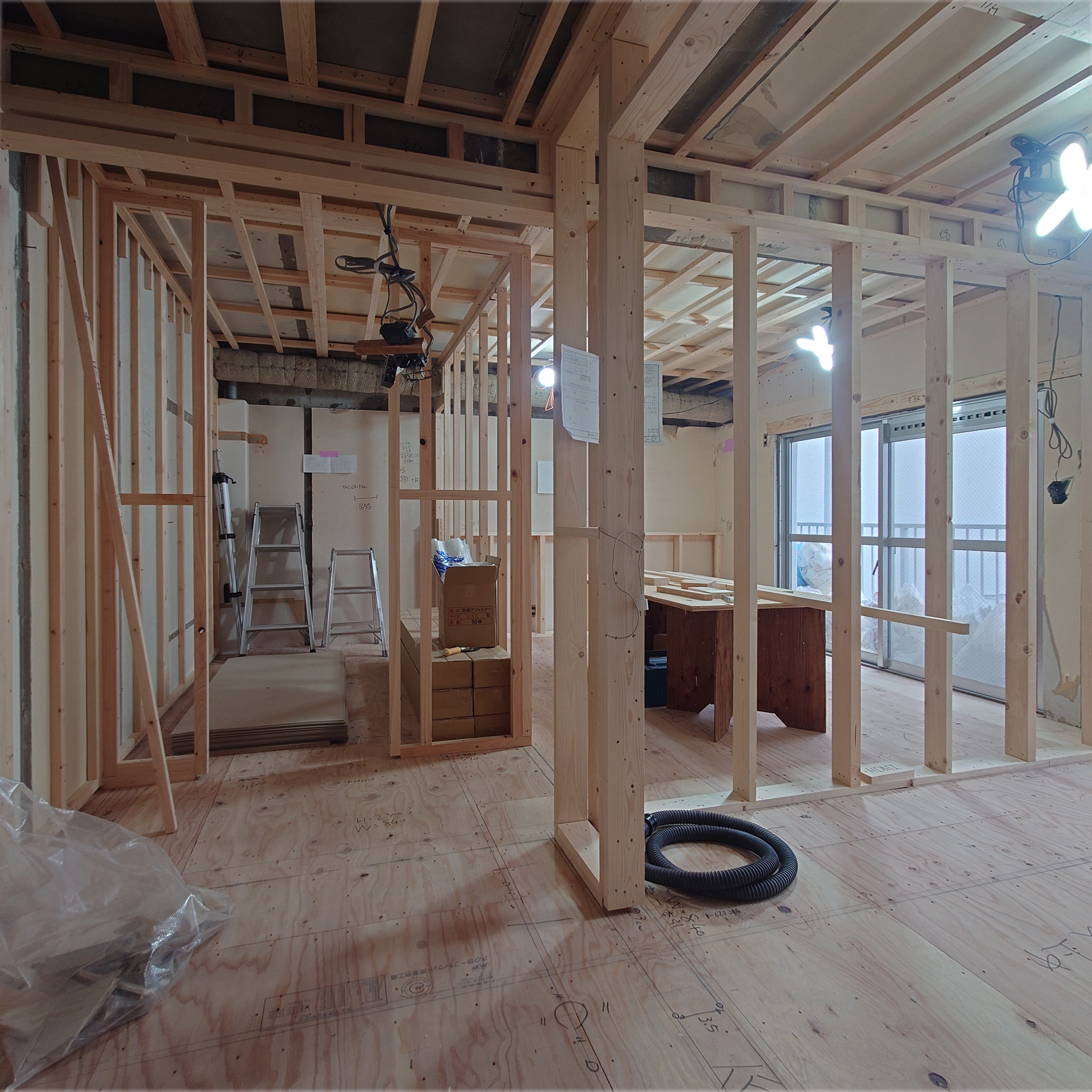 明日からフロアー材貼り始めます