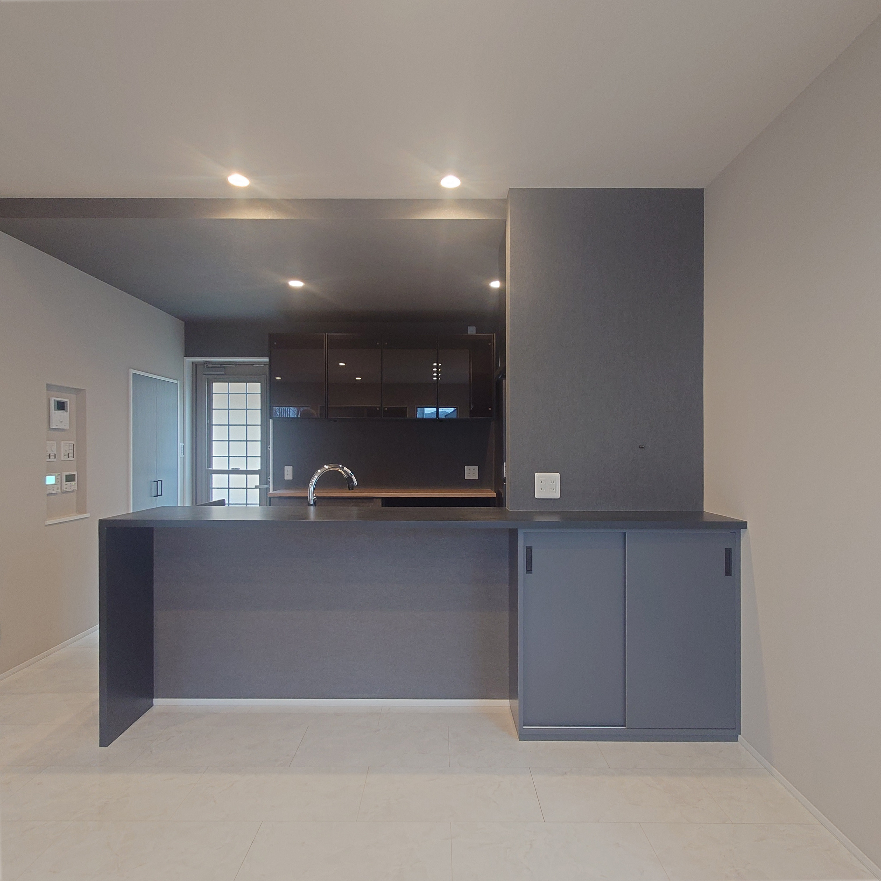 グレーを基調としたシックな佇まいのキッチンです